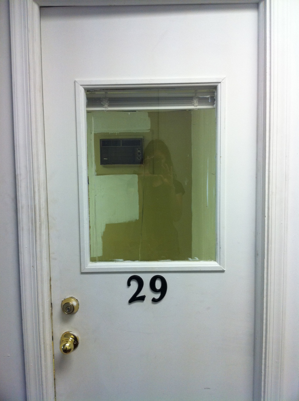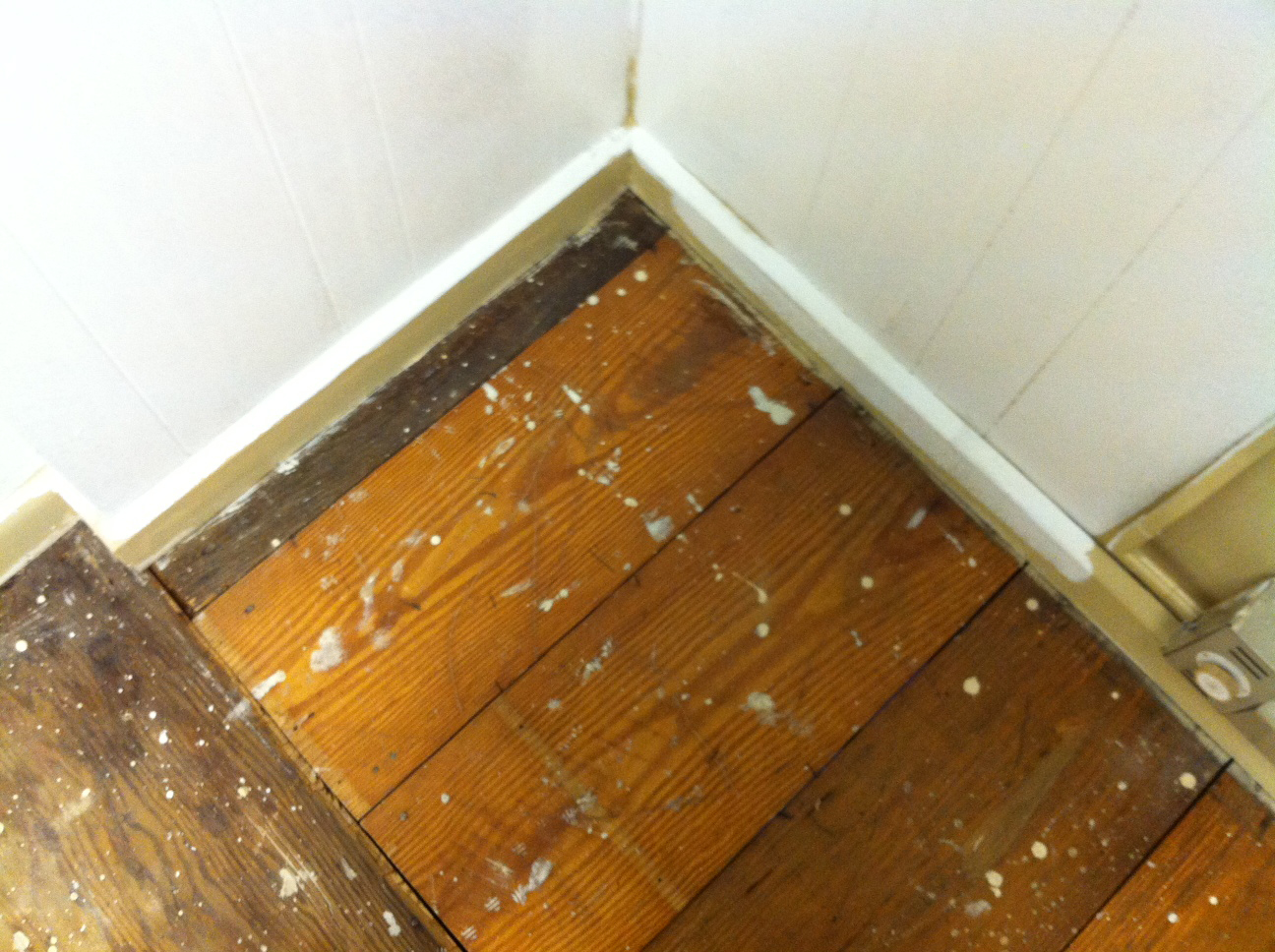 So the carpet has been ripped up. Unfortunately, that little peek at old beams proved to be just that... the patchwork quilt of beams, plywood and linoleum definitely had me in a bit of a tizzy when I saw what was under the ENTIRE room. Deep breaths, deep breaths. Other than the fact that I could hear people underneath me (does carpeting sound-proof rooms? Anyone?) I still agree that ripping it up was the way to go. Perhaps a rug is the answer....